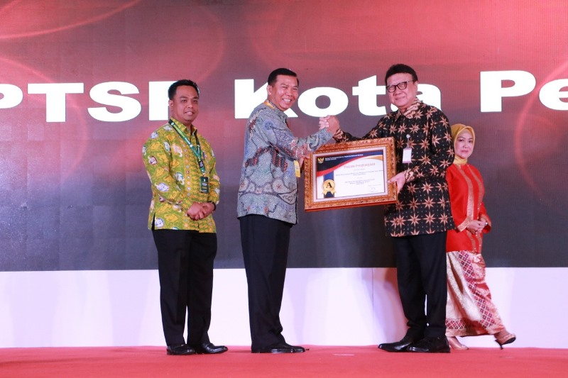 Menteri Pendayagunaan Aparatur Negara dan Reformasi Birokrasi (Menpan RB) RI, Tjahjo Kumolo menyerahkan langsung kepada Walikota Pekanbaru, Firdaus MT. Kepala DPMPTSP Kota Pekanbaru, Muhammad Jamil hadir mendampingi.
