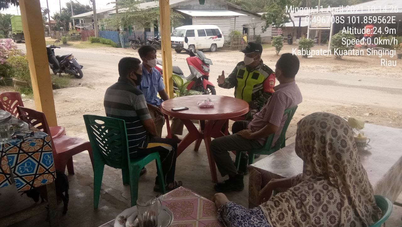 Kuansing- Babinsa Koramil 06/Cerenti Kodim 0302/ Inhu Kopka Ardizal Melaksanakan kegiatan Komsos (Komunikasi sosial) terhada warga masyarakat, agar tetap mengikuti dan mematuhi anjuran Pemerintah dalam Penegakan disiplin Protokol Kesehatan Covid-19, kegiatan Komsos Komunikasi sosial dilaksanakan bertempat Warung sarapan pagi Desa Kompe Beragin Kec. Cerenti Kab. Kuantan Singingi, Minggu (11/04/2021).