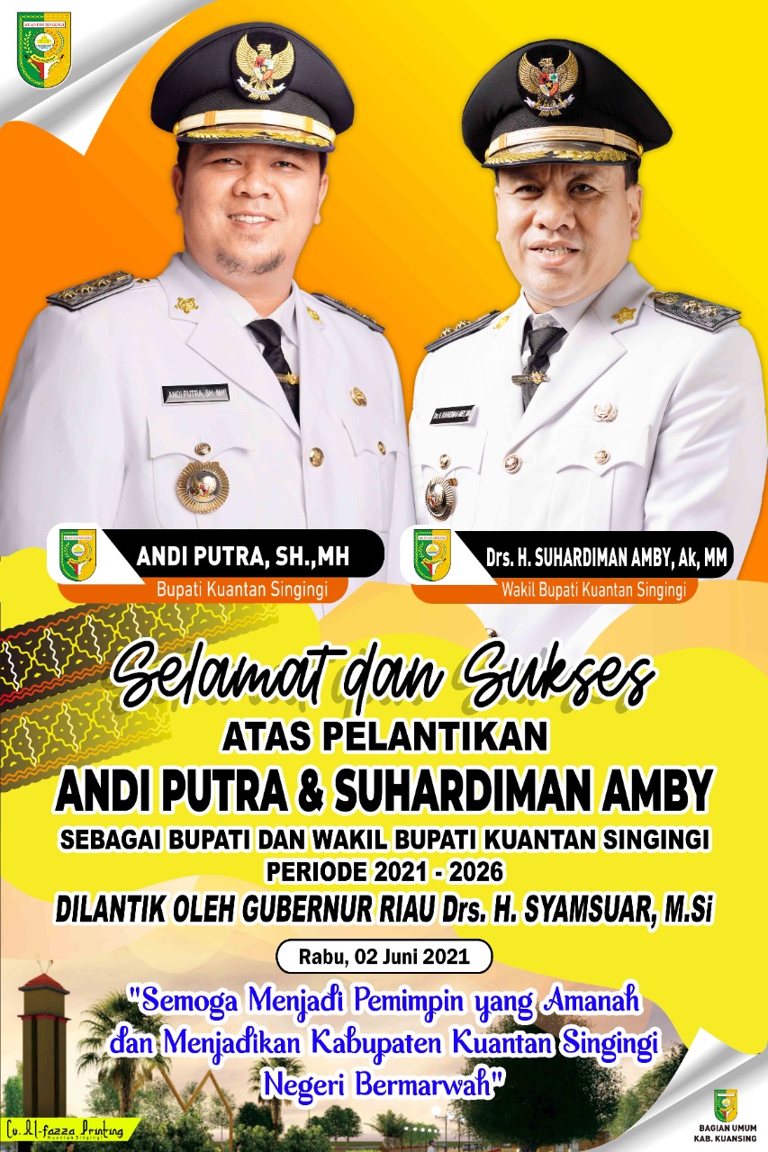 Kuansing- Besok Bupati dan Wakil Bupati Kuansing resmi di lantik oleh Gubernur Riau H. Syamsuar. Banyak harapan dari masyarakat Kuansing, dipundak Bupati dan Wakil Bupati Kuansing periode 2021-2025 yaitu Pasangan Andi Putra-Suhardiman Amby hasil Pilkada Tahun 2020 lalu.