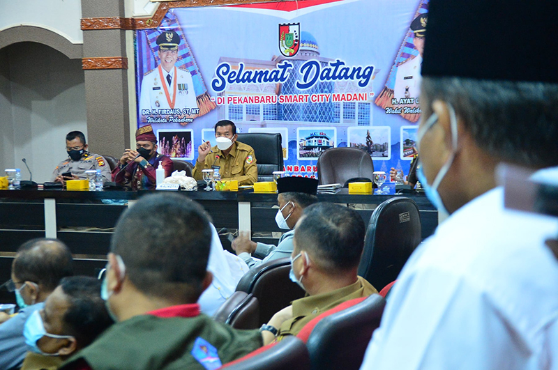 PEKANBARU - Wali Kota Pekanbaru Dr H Firdaus ST MT, meminta Satuan Tugas (Satgas) Percepatan dan Penanganan Covid-19 untuk meningkatkan sosialisasi dan edukasi di pasar-pasar dan rumah ibadah.