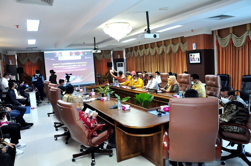 PEKANBARU - Wali Kota Pekanbaru DR H Firdaus MT meghadiri Rapat Koordinasi Nasional (Rakornas) Pengendalian Inflasi Tahun 2021 yang dibuka secara Resmi oleh Presiden RI Joko Widodo didampingi Menko Bidang Ekonomi, secara virtual, pada Rabu (25/08/2021), di ruang rapat Wali Kota, Lantai V Komplek Perkantoran Tenayan Raya.