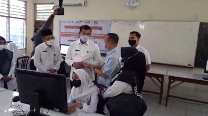 PEKANBARU - Walikota Pekanbaru Dr. H. Firdaus, S.T.,M.T, meninjau proses pembejalaran tatap muka (PTM) di dua SMP Negeri, Rabu (15/9/2021). Kedua SMP tersebut yakni SMPN 13 Pekanbaru dan SMP Madani.