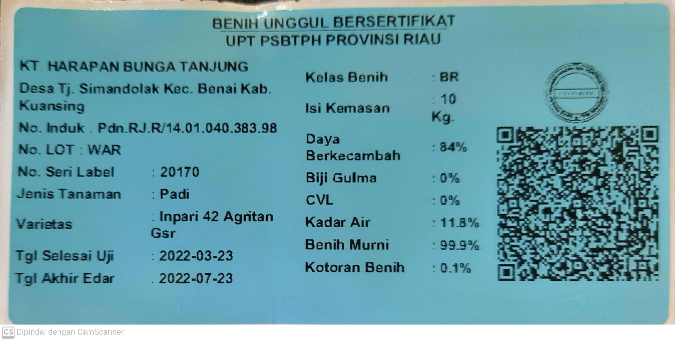 Plt Kepala Desa Tanjung Simandolak, Suwandi Putra membenarkan, jika benih padi dari desa nya sudah mendapatkan sertifikat dan resmi di kirim ke kabupaten Rokan Hilir, jelas Suwandi usai menerima label benih dari Dinas Pertanian Riau Jumat pagi.