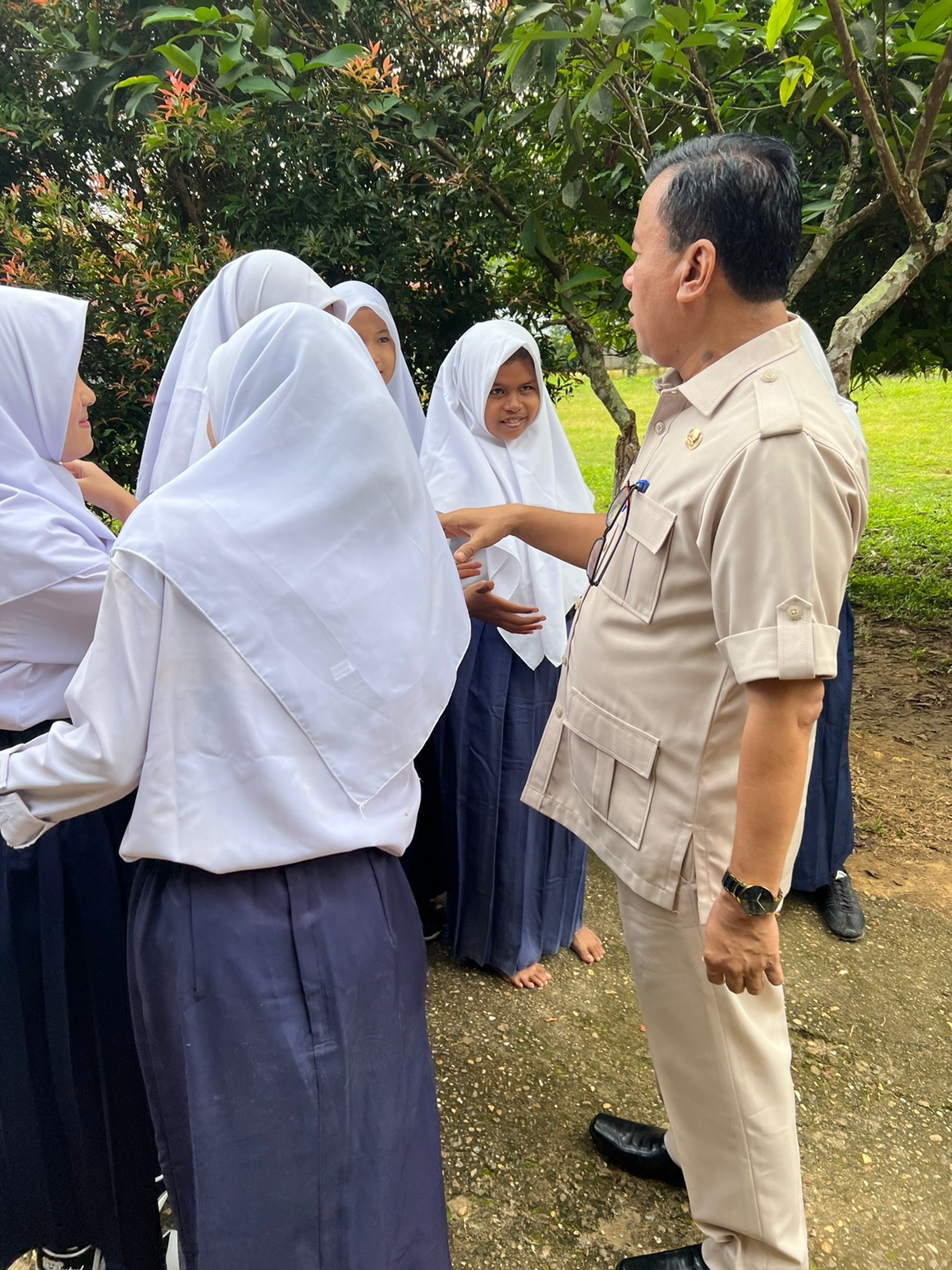 PLT Bupati Kuansing Suhardiman Amby Berdialog Dengan Siswa Saat Melakukan Sidak di SMP Negeri 2 Inuman