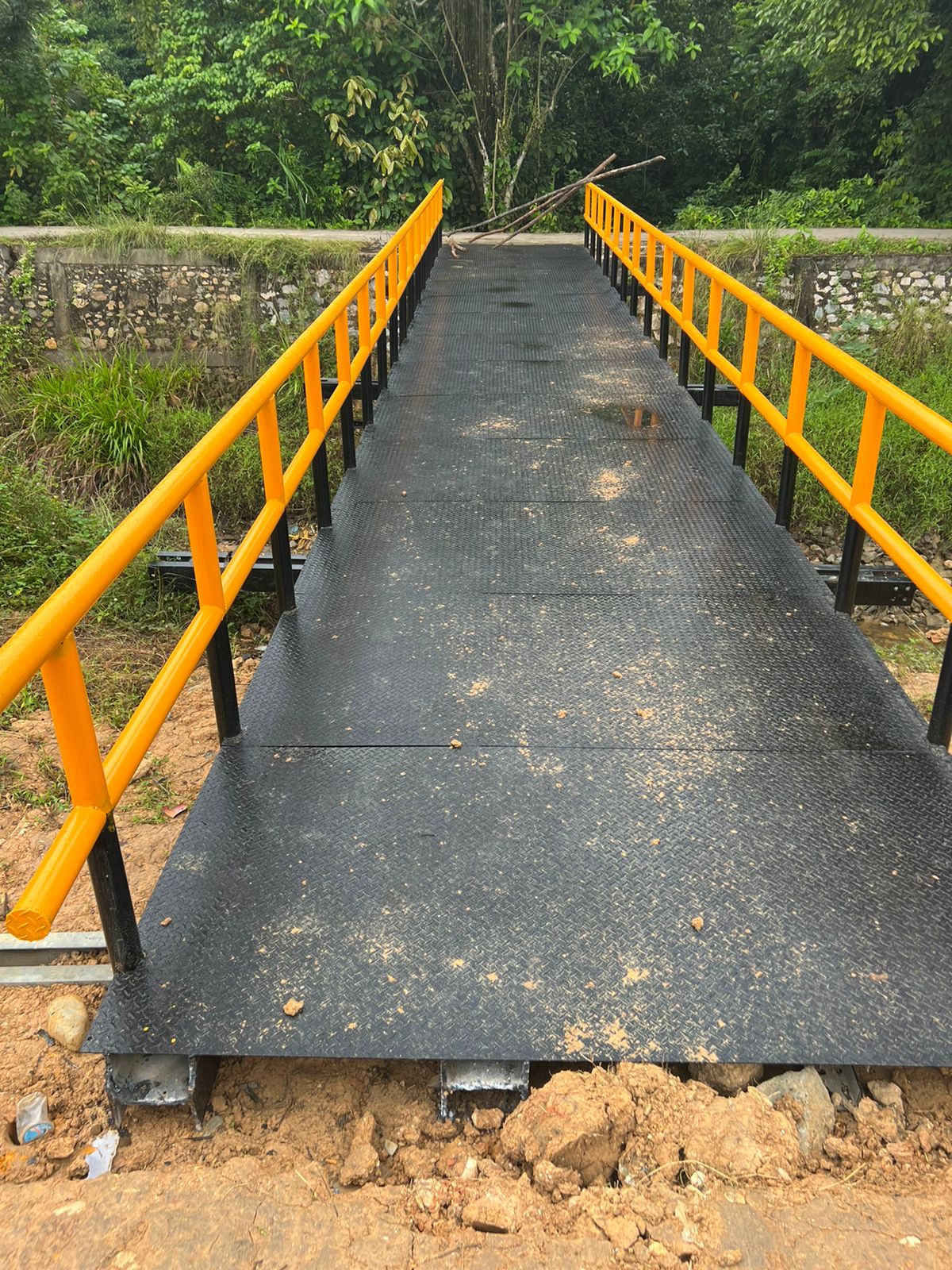 Kuansing- Sesuai yang di janjikan, tak sampai sepekan pasca ambruknya jembatan di kawasan Pulau Bungin Desa Koto Teluk Kuantan, kini jembatan darurat itu sudah selesai di bangun.