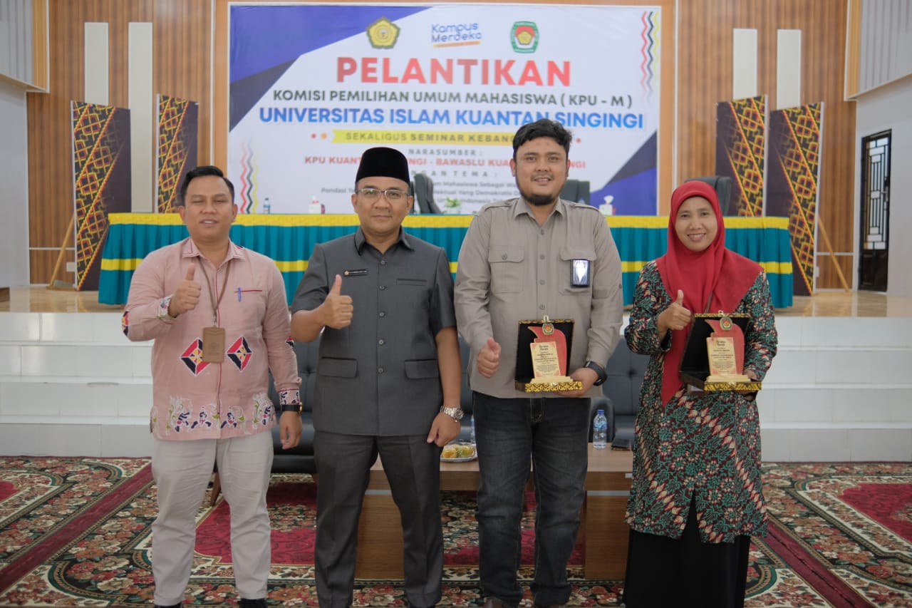 Kuansing- Setelah acara pelantikan Komisi Pemilihan Umum Mahasiswa Universitas Islam Kuantan Singingi (KPUM UNIKS) tahun 2023 yang dilaksanakan di Gedung Serba Guna (GSG) UNIKS, Selasa (06/03/2023), dilanjutkan dengan seminar kebangsaan mengusung tema : "Komisi Pemilihan Umum Mahasiswa sebagai Wadah Pondasi Terbentuknya Generasi Intelektual yang Demokratis dan Independen Menyongsong Pemilihan Umum Indonesia Tahun 2024", yang menghadirkan pemateri dari Komisioner Komisi Pemilihan Umum (KPU) Kabupaten Kuantan Singingi Wigati Iswandhiari, ST., MM dan Anggota Badan Pengawas Pemilu (BAWASLU) Kabupaten Kuantan Singingi Teddy Niswansyah, S.Ikom.