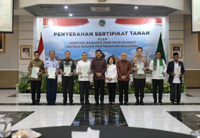 Pemko Pekanbaru Terima 3 Sertifikat Aset Tanah dari Menteri ATR/BPN