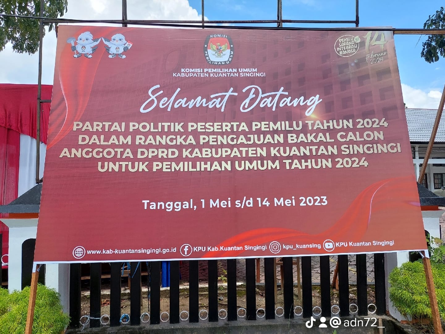 Kuansing- Komisi Pemilihan Umum (KPU) Kabupaten Kuantan Singingi Sesuai Tahapan Pemilihan Umum Tahun 2024 telah membuka pendaftaran bakal calon (bacalon) anggota Dewan Perwakilan Rakyat Daerah (DPRD) untuk Kabupaten Kuantan Singingi.