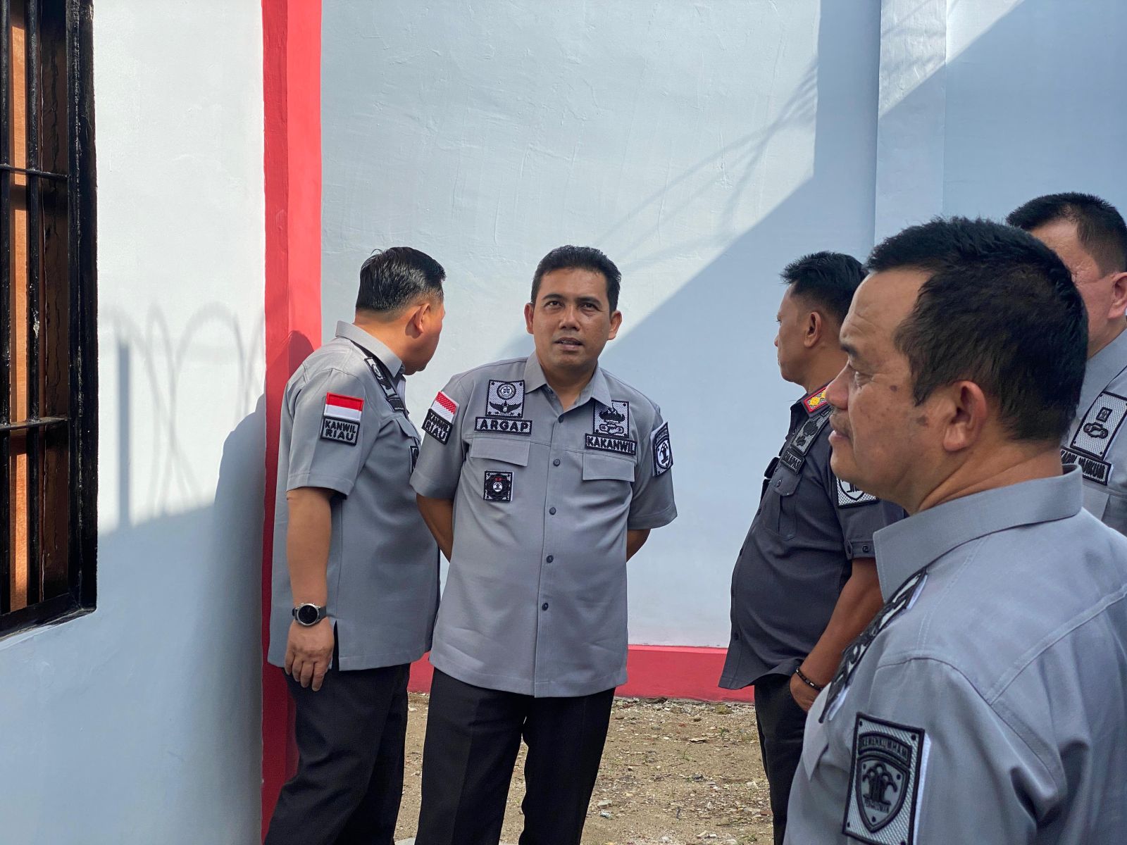 Setelah berkeliling Lapas, Kepala Lapas Teluk Kuantan memerintahkan seluruh petugas Lapas untuk berkumpul di ruang serbaguna Lapas untuk menerima penguatan dari Kepala Kantor Wilayah Kemenkumham Riau.