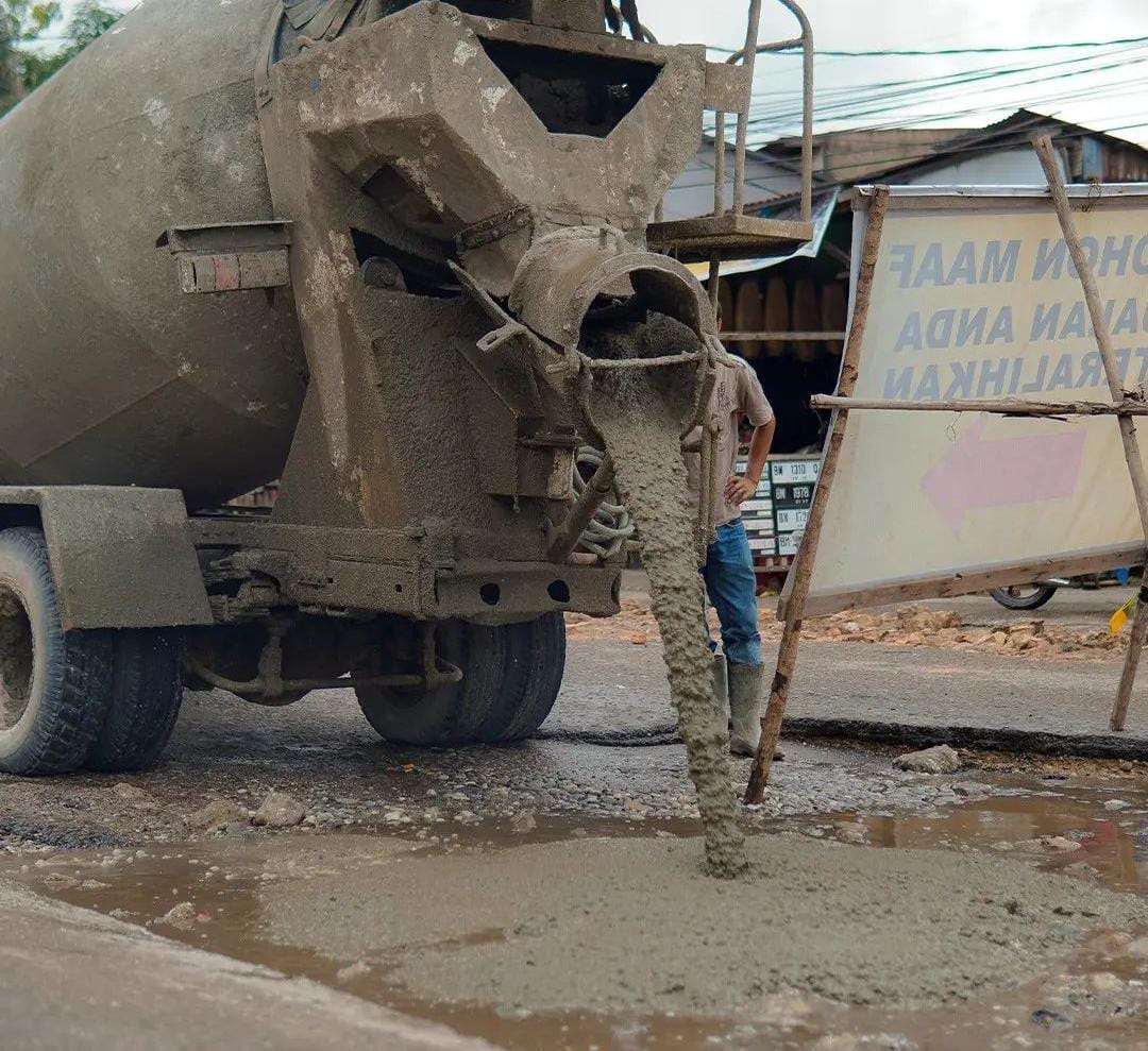 Usai peninjauan itu, Dinas PUPR melakukan perbaikan sementara bagian jalan yang rusak parah. Lubang jalan dicor menggunakan cor readymix.
