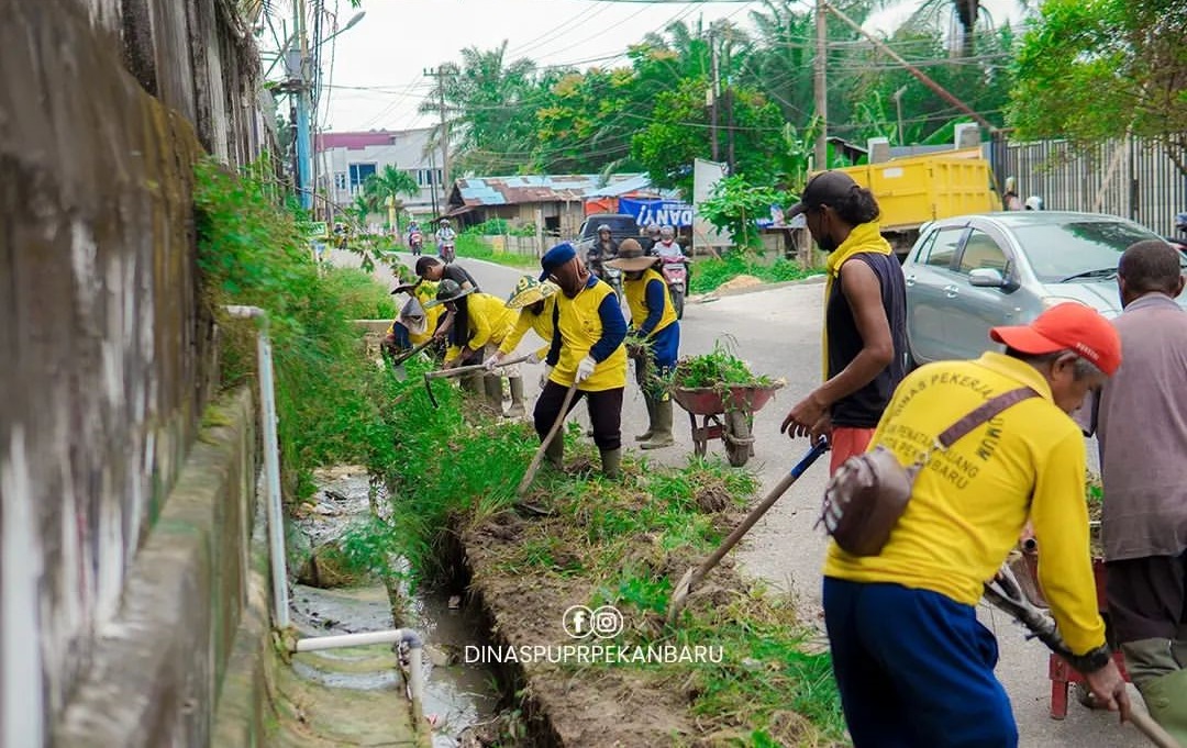 Dinas PUPR Pekanbaru Terjunkan Pasukan Kuning Bersihkan Drainase di Jalan Bakti
