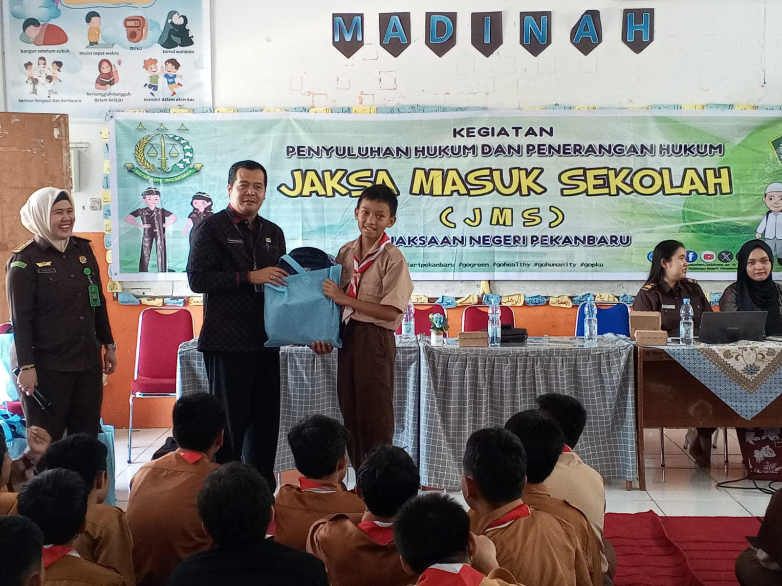 Dalam kegiatan ini, lanjut dia, Kejari Pekanbaru juga membagikan cendera mata berupa suvenir dan buku kepada para pelajar SMP Juara Pekanbaru.