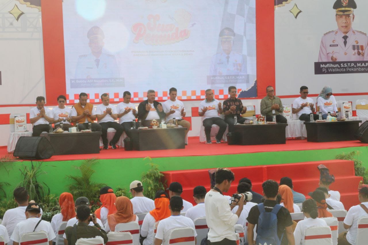 PEKANBARU - Kepala Dinas Kepemudaan dan Olahraga (Dispora) Kota Pekanbaru, Hazli Febriyanto, memberikan tanggapan positif mengenai kemeriahan konser Sua Pemuda yang menjadi bagian dari rangkaian kegiatan Rapat Kerja (Raker) Komisariat Wilayah I Asosiasi Pemerintah Kota Seluruh Indonesia (APEKSI) di Kota Pekanbaru.