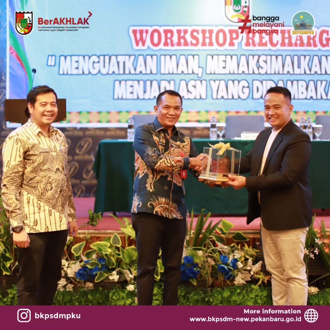 PEKANBARU - Dalam upaya meningkatkan kualitas pengabdian dan keteladanan Aparatur Sipil Negara (ASN), Badan Kepegawaian dan Pengembangan Sumber Daya Manusia (BKPSDM) Pekanbaru menggelar Workshop "Recharge Penguatan Iman, Memaksimalkan Pengabdian Menjadi ASN yang Didambakan". Workshop ini dilaksanakan di aula utama Komplek Perkantoran Tenayan Raya.
