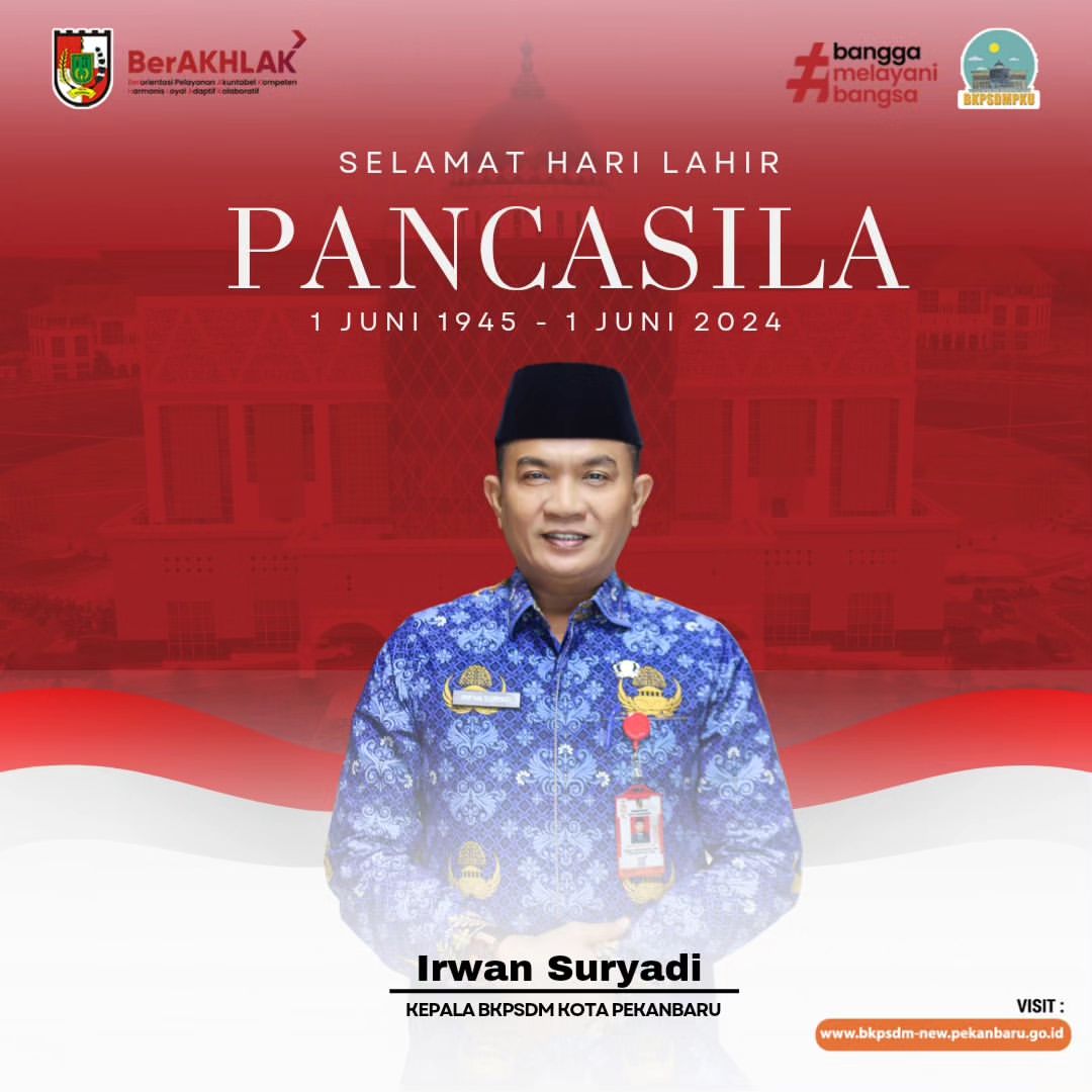 Sementara itu, Kepala BKPSDM Kota Pekanbaru, Irwan Suryadi, bersama jajarannya hadir lengkap mengikuti upacara ini. Irwan Suryadi menyampaikan bahwa peringatan Hari Lahir Pancasila merupakan momen penting untuk memperkuat semangat kebangsaan dan pengabdian kepada negara. "Kami di BKPSDM berkomitmen untuk terus menginternalisasikan nilai-nilai Pancasila dalam setiap program dan kegiatan, serta memastikan bahwa seluruh ASN di Pekanbaru memahami dan mengamalkan nilai-nilai tersebut," ujar Irwan Suryadi pada Senin (3/6/2024).