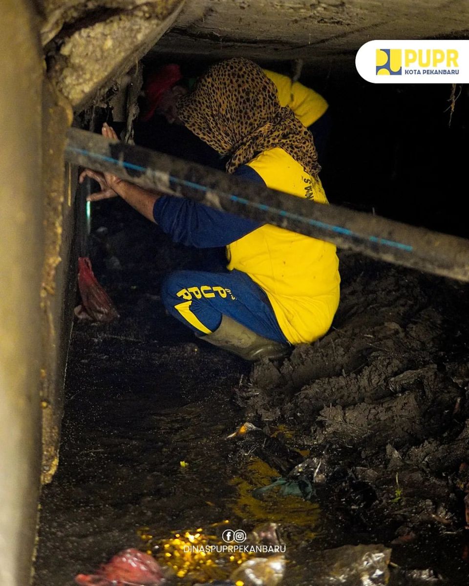 PEKANBARU - Dinas Pekerjaan Umum dan Penataan Ruang (PUPR) Kota Pekanbaru terus mengintensifkan upaya membersihkan drainase utama kota ini guna mengatasi masalah banjir yang sering terjadi saat curah hujan tinggi.