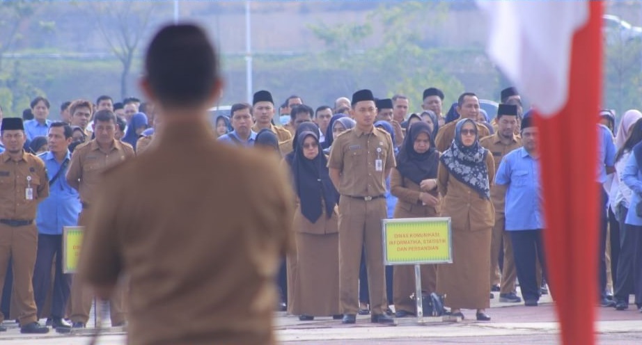 PEKANBARU - Seluruh jajaran Badan Pengelolaan Keuangan dan Aset Daerah (BPKAD) Kota Pekanbaru mengikuti apel gabungan yang digelar di halaman Gedung Utama Komplek Perkantoran Tenayan Raya pada Senin pagi (21/10/2024). Apel tersebut dipimpin langsung oleh Penjabat (Pj) Walikota Pekanbaru, Risnandar Mahiwa.
