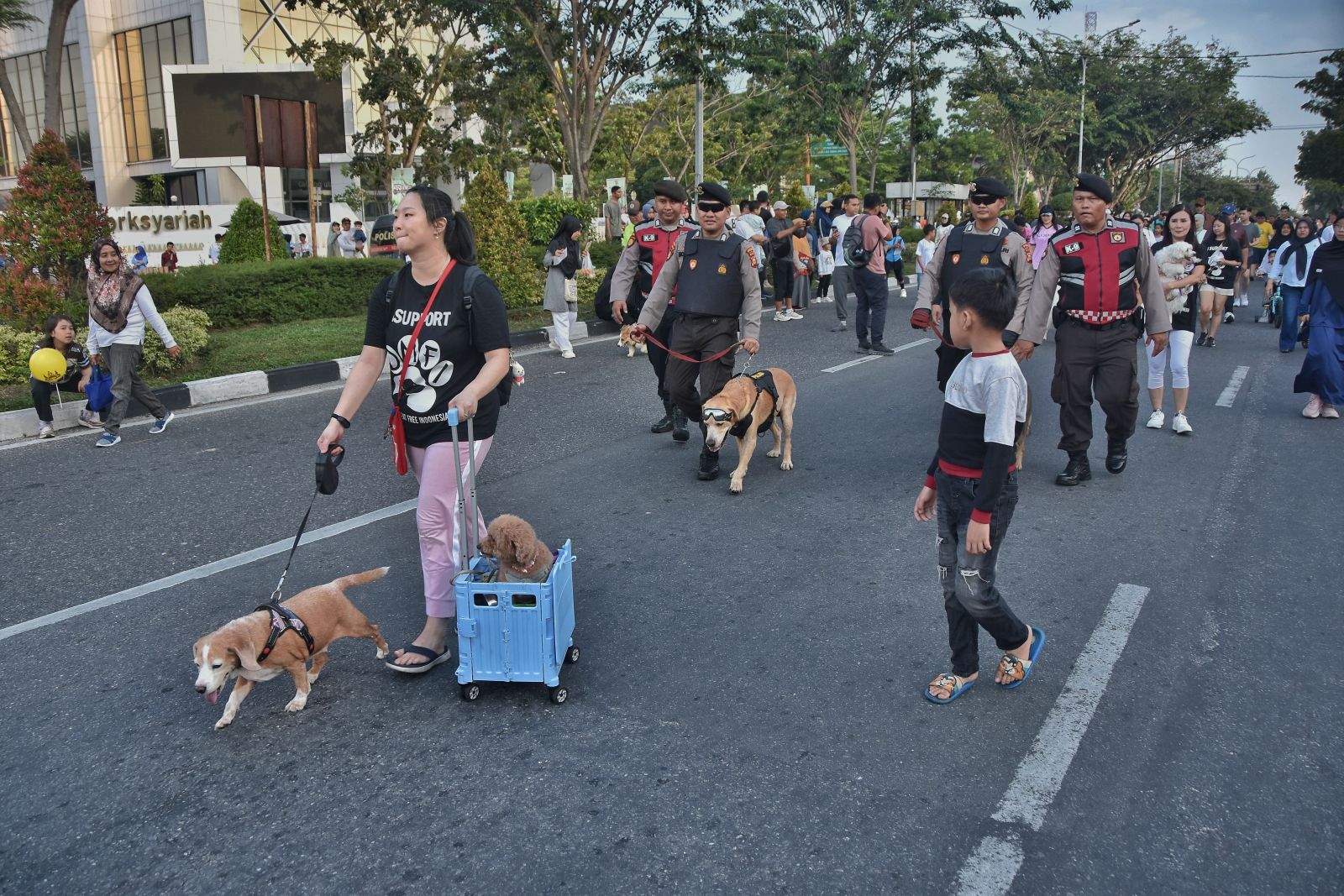 PEKANBARU - Kepolisian Daerah (Polda) Riau menggelar kegiatan Pet Parade untuk mengenang Reno, anjing pelacak tim K9 Direktorat Samapta Polda Riau, di kawasan Car Free Day Jalan Cut Nyak Dien, Kota Pekanbaru, Minggu pagi (1/2/2026).