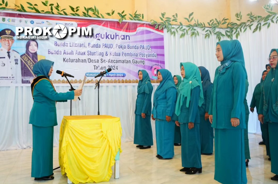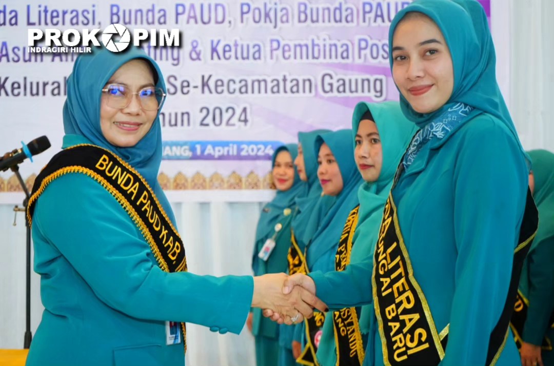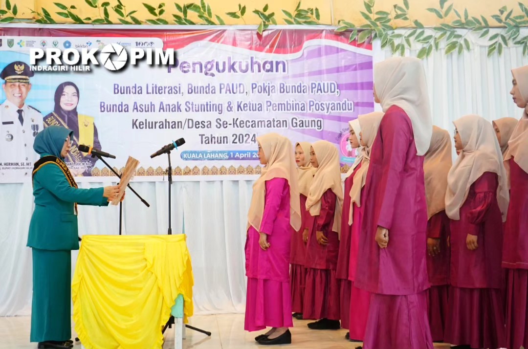 TIRAINEWS.COM - Guna menumbuhkan daya minat baca, menciptakan suasana belajar yang menyenangkan dan menciptakan generasi yang sehat dan bebas dari Stunting, merupakan salah satu tujuan dari pengukuhan Bunda Literasi, Bunda PAUD, Pokja Bunda PAUD, Bunda Asuh Anak Stunting dan Ketua Pembina Posyandu Kelurahan/Desa Se-kecamatan Gaung Tahun 2024.