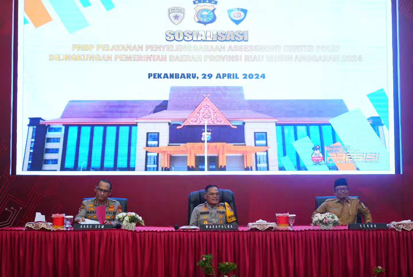 RIAUREALITA.COM - Pemerintah Kabupaten Indragiri Hilir yang di wakili Asisten Administrasi Umum Setdakab Inhil, H. Fajar Husin mengikuti sosialisasi Penerimaan Negara Bukan Pajak (PNBP) yang dilaksanakan pelayanan penyelenggaraan Assessment Centre Polri dilingkungan Pemerintah Provinsi Riau TA. 2024, Senin (29/4/2024).
